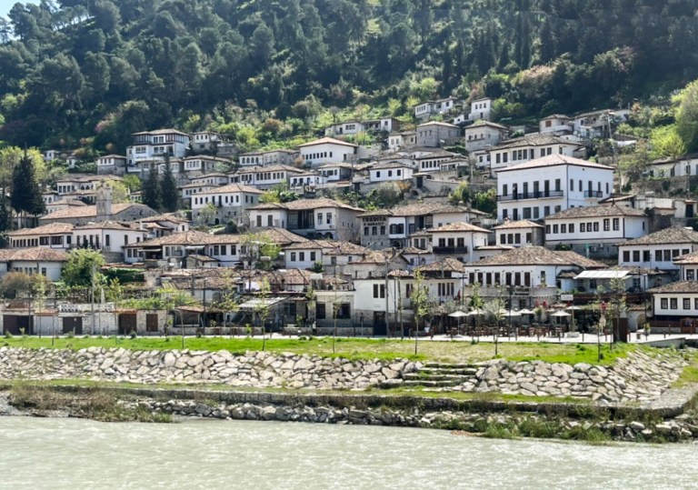 Berat, a UNESCO World Heritage site in Albania, is renowned for its unique Ottoman-era houses set into the hillside.