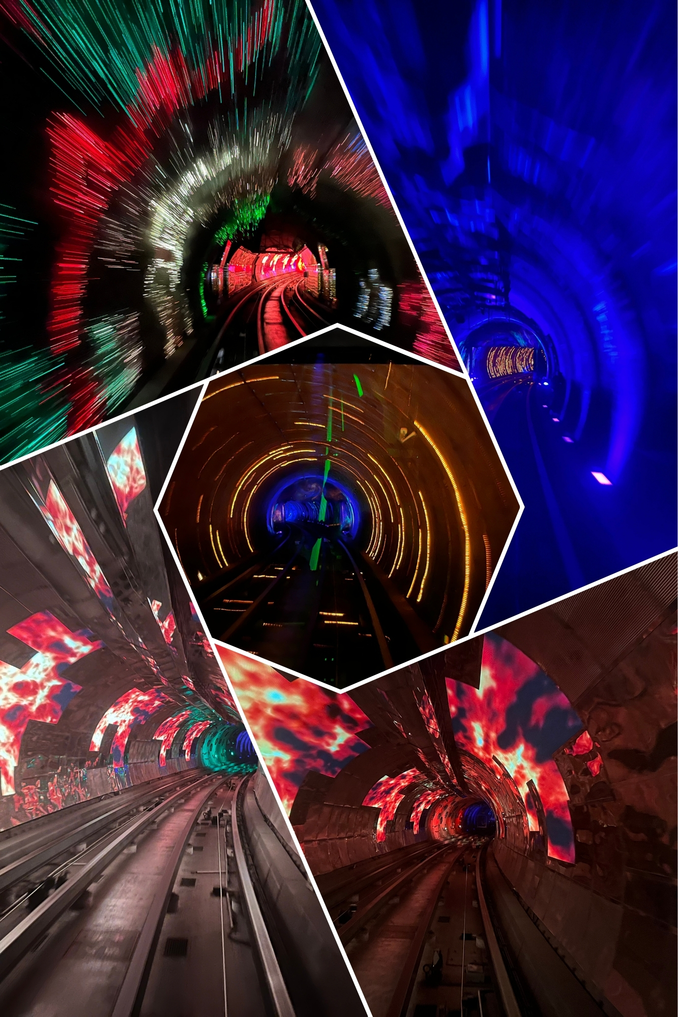 And the psychedelic photographs from the journey through the Bund Tunnel. It’s a 2.1 mile underwater connecting the Huangou and Hangkou districts. It’s fun and different.