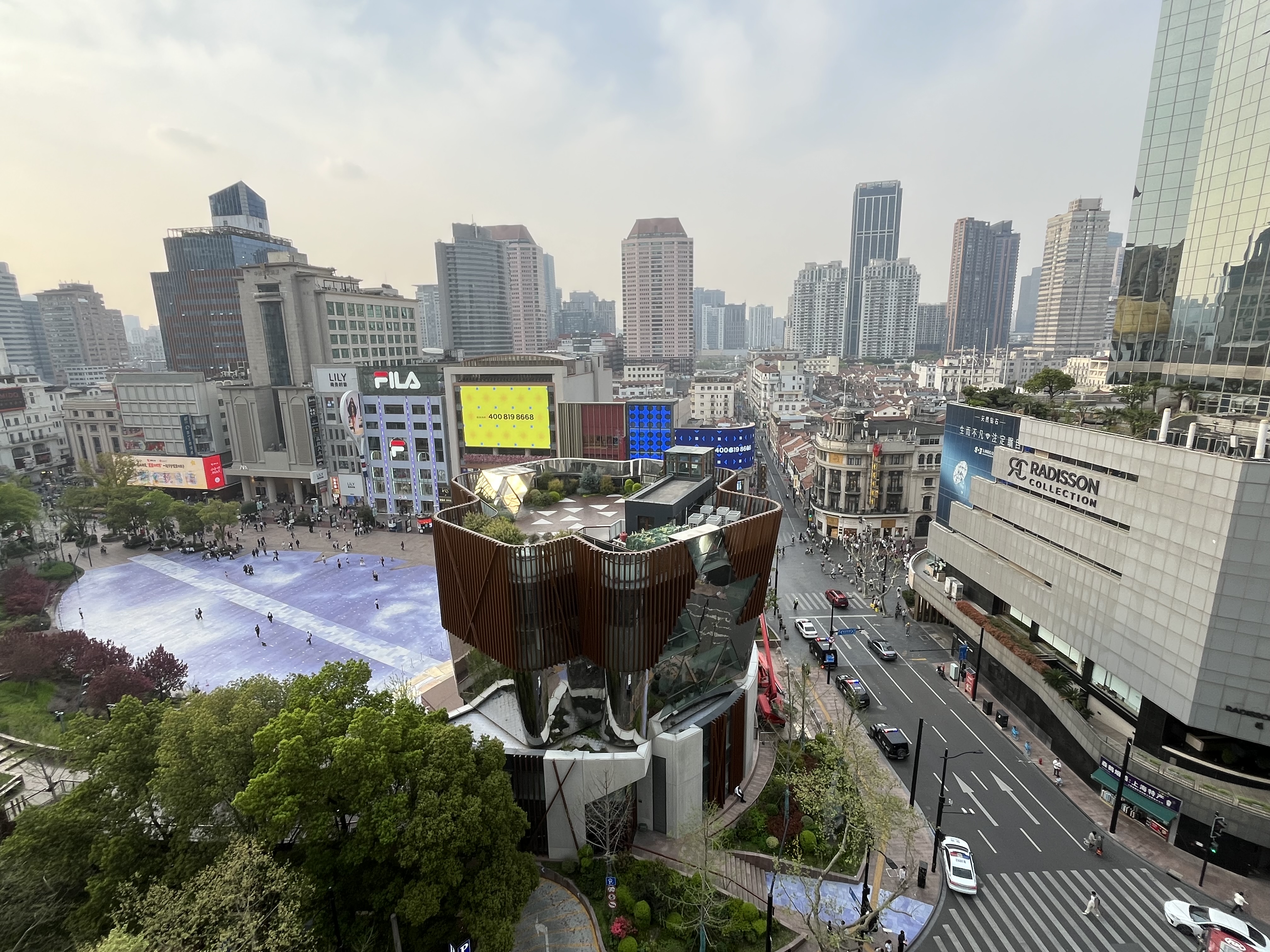Getting off the Maglev train it was straight forward to transfer to the Shanghai MRT (Mass Rapid Transit) and find my way to line number 2 that will take me to Peoples Square and close to my hotel. I thought, ‘this was all a bit too easy’, and I might pay for this later. My hotel is wonderful, they kindly upgraded me and I have this wonderful corner unit room with a magnificent view. Just in case I am bored or lazy, I have two massive tv’s, should I need to move the 20 feet from one to the other. The view from the hotel window was majestic!